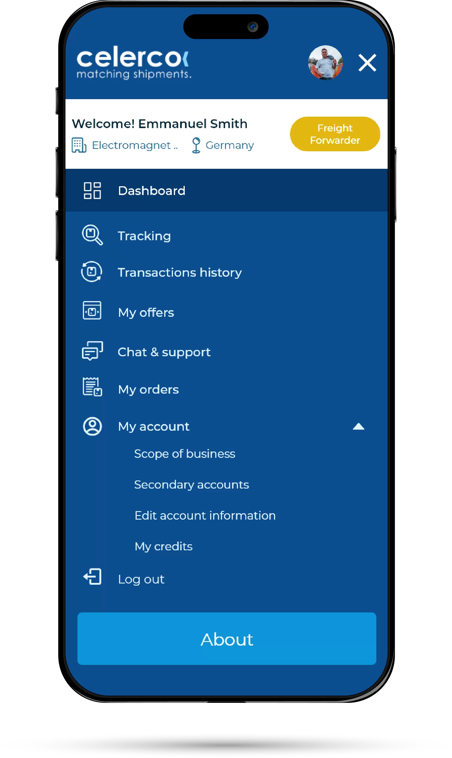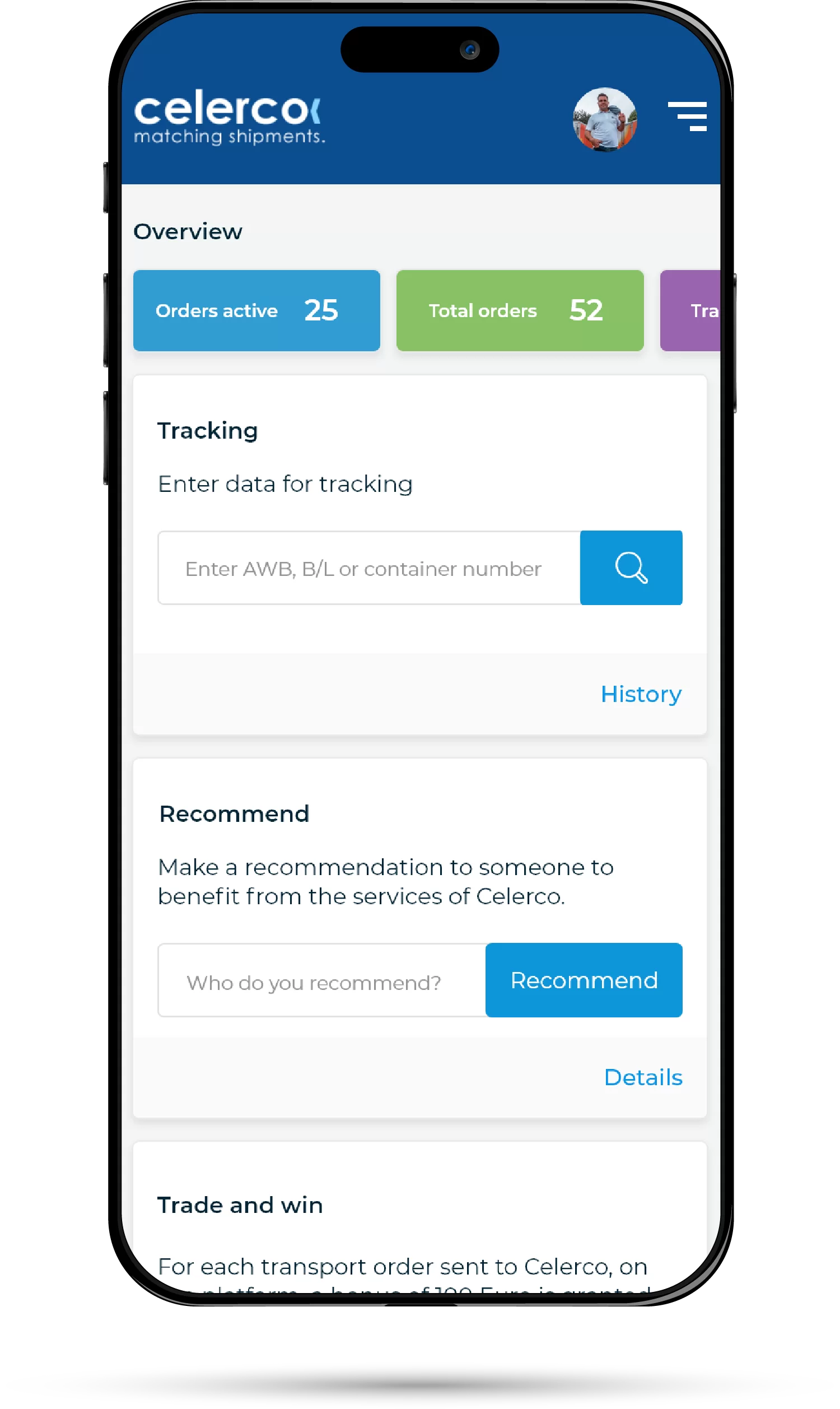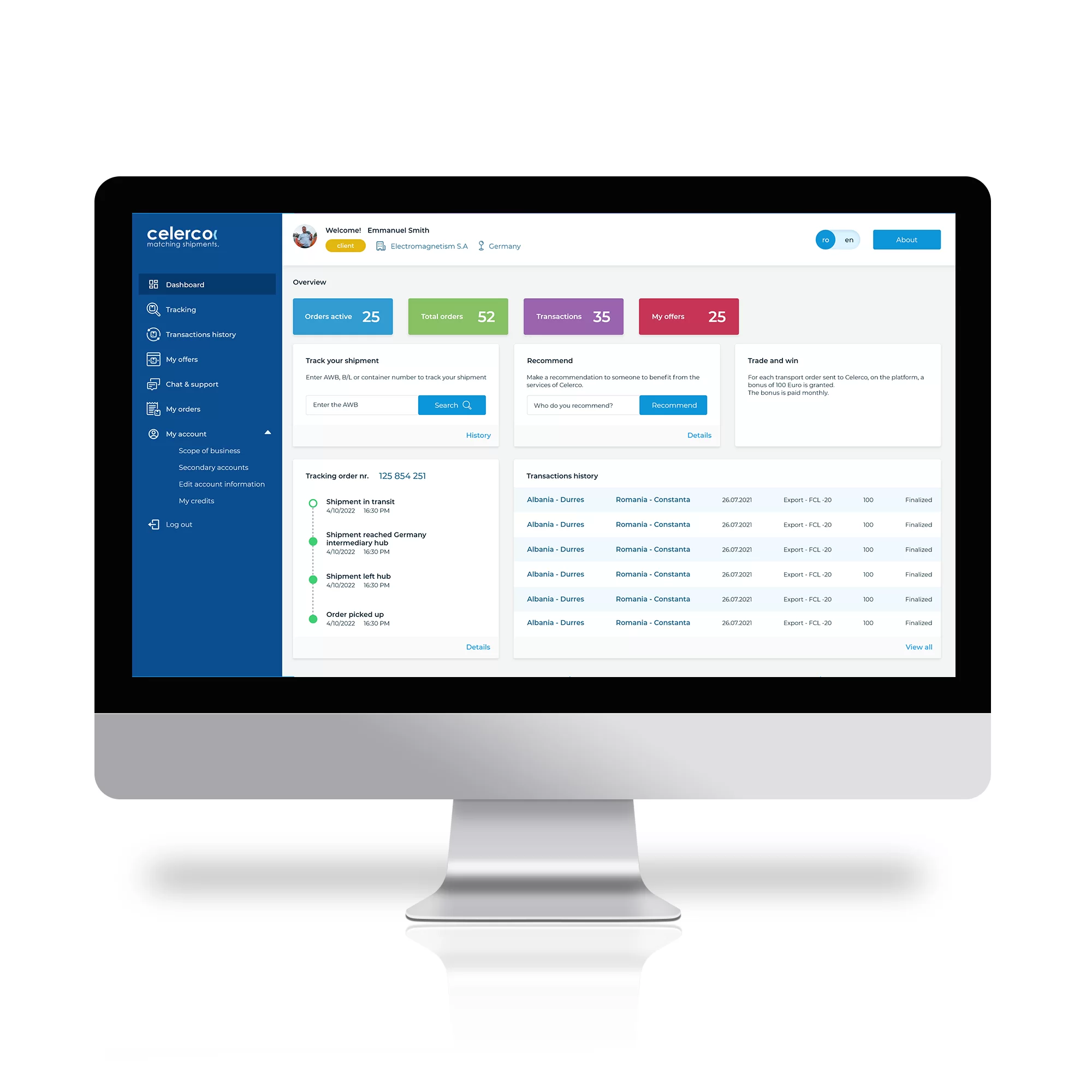 Un sistem ce permite licitații și conexiunea între transportatori și potențialii clienți. Celerco vine cu un sistem simplu și avantajos, prin care se pot contracta transporturi. Sistemul are și o funcție de tracking, care ajută clienții să urmărească transportul. Aplicația are la bază un backend custom, în PHP.