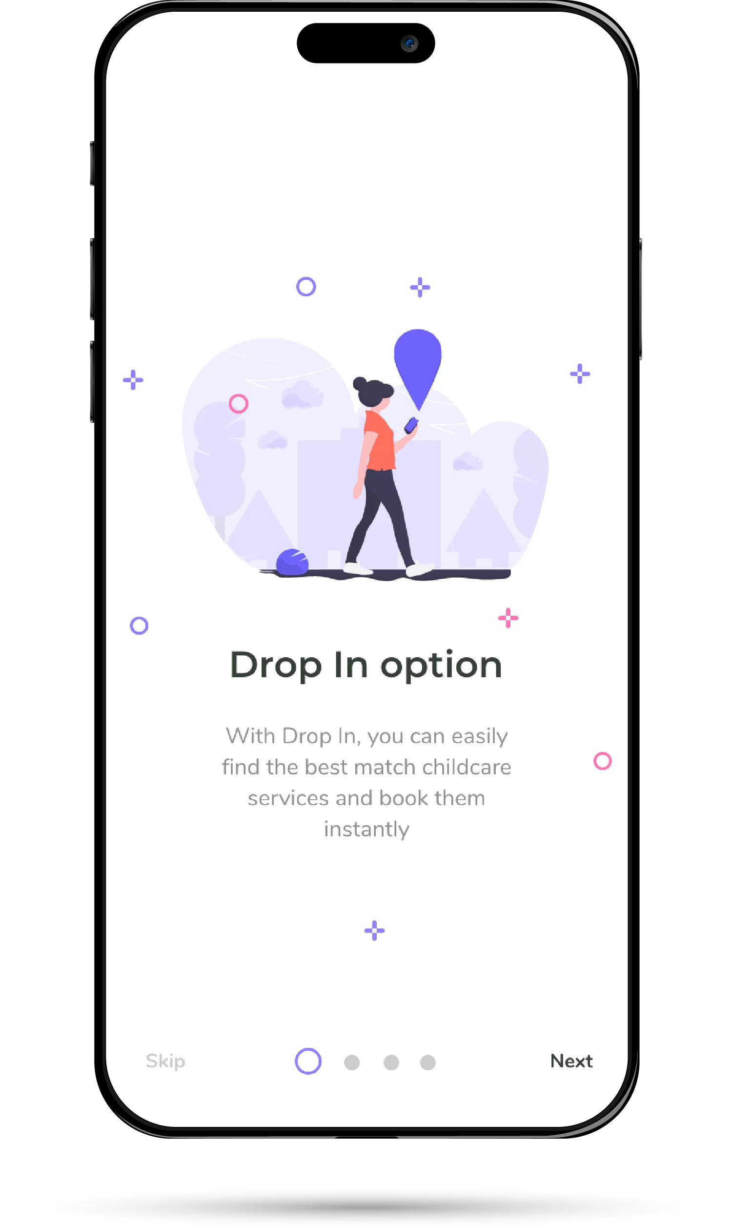 O aplicație complexă, dedicată, pe de o parte, părinților și, de cealaltă parte, grădinițelor sau centrelor care asigură servicii after hours sau similare. Dropin înglobează o bază de date de câteva sute de mii de centre educaționale pentru copiii din USA. Acestea sunt organizate pe fiecare stat și oraș. Sistemul permite, prin intermediul aplicației și al site-ului, două tipuri de conturi. Contul centrului educațional, prin care aceasta setează toate datele (programul, grupele, costurile și alte detalii) și contul parintelui, care poate face booking și plăti direct în app. Acesta are funcții multiple de tracking, instrumente de vizualizare a activității, rapoarte și un chat. Totul se întâmplă în cadrul aplicației.