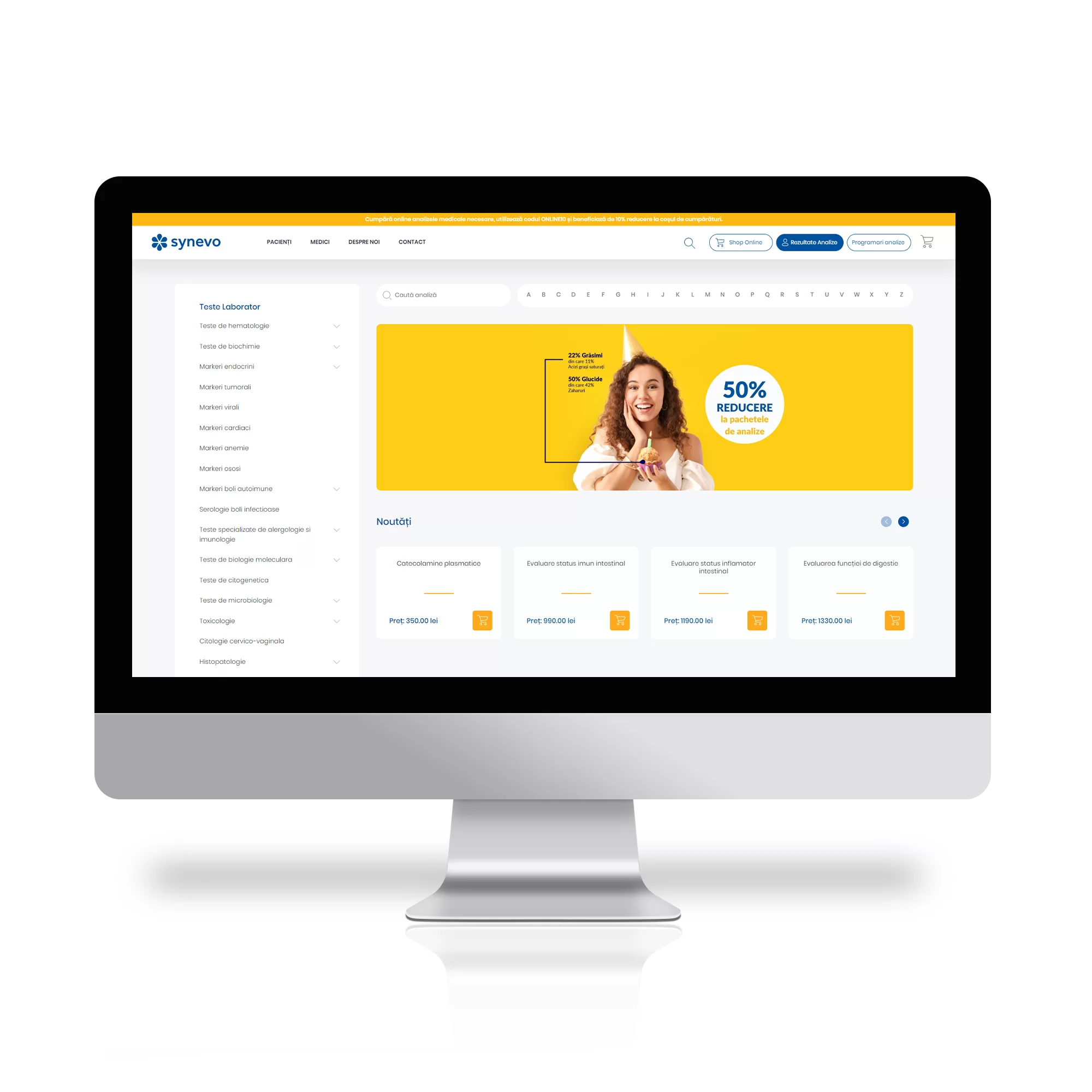 Atât România, cât și Moldova ne-au ales, în 2020, pentru a dezvolta magazinul online. Deși există particularități pentru fiecare regiune, Synevo a fost dezvoltat pe platforma WooCoomerce, dar cu plugin-uri custom pentru mai multe tipuri de module. Magazinul are diverse tipuri de trasee de cumpărare, de la cel clasic până la module complexe: Senzorul de sănătate, planșa anatomică, recoltările la domiciliu, pachete sau posibilitatea de a achiziționa un card cadou.